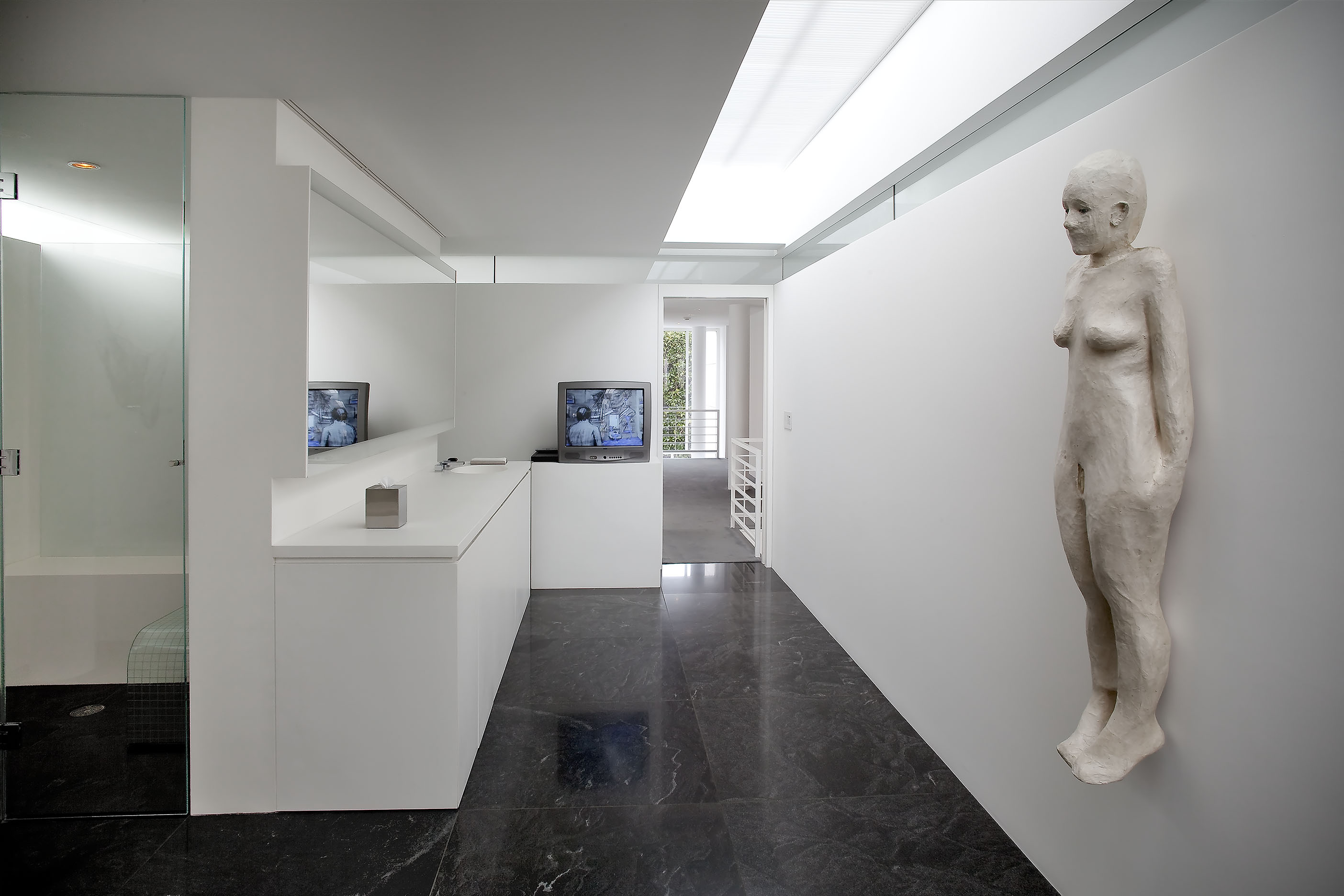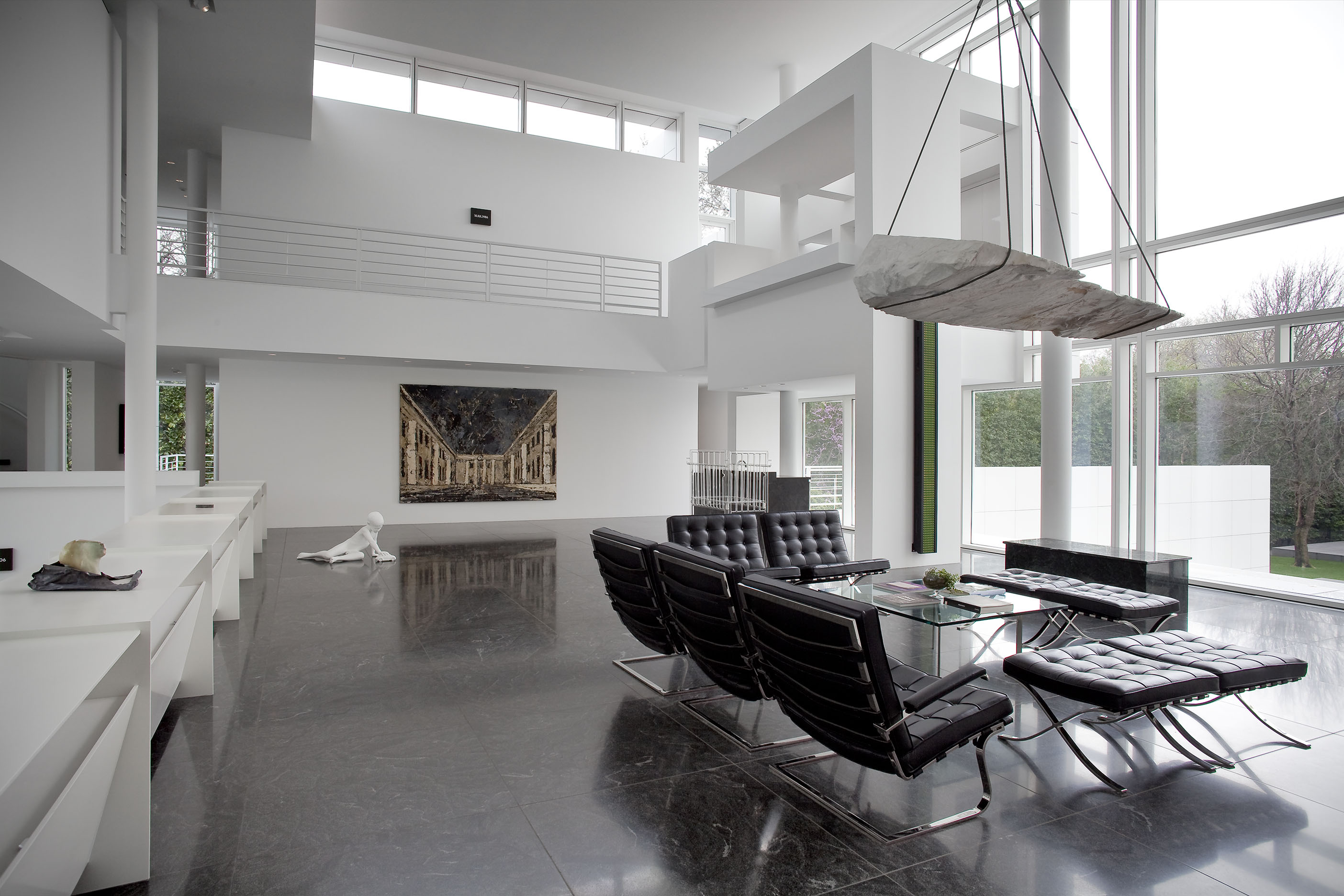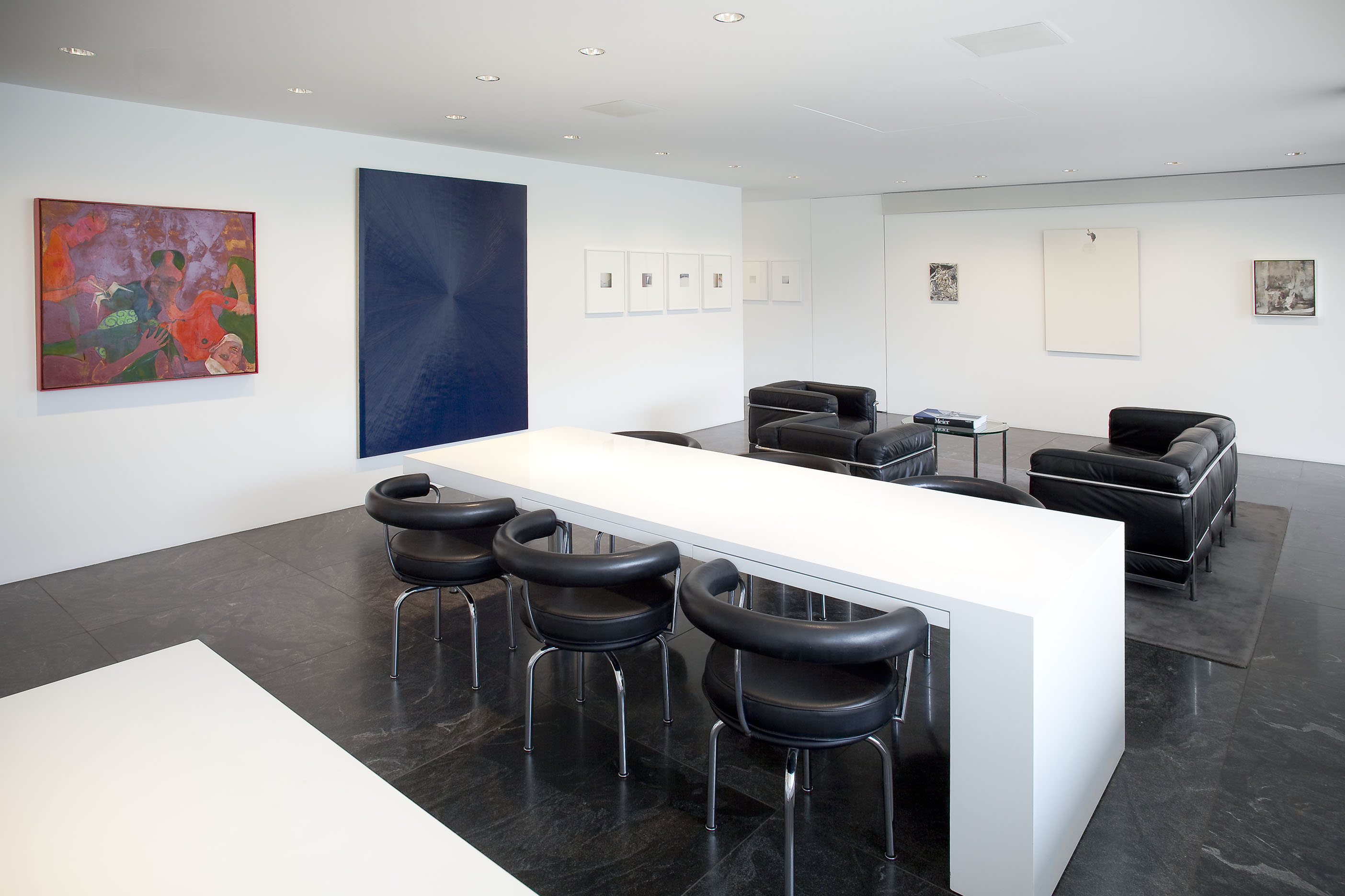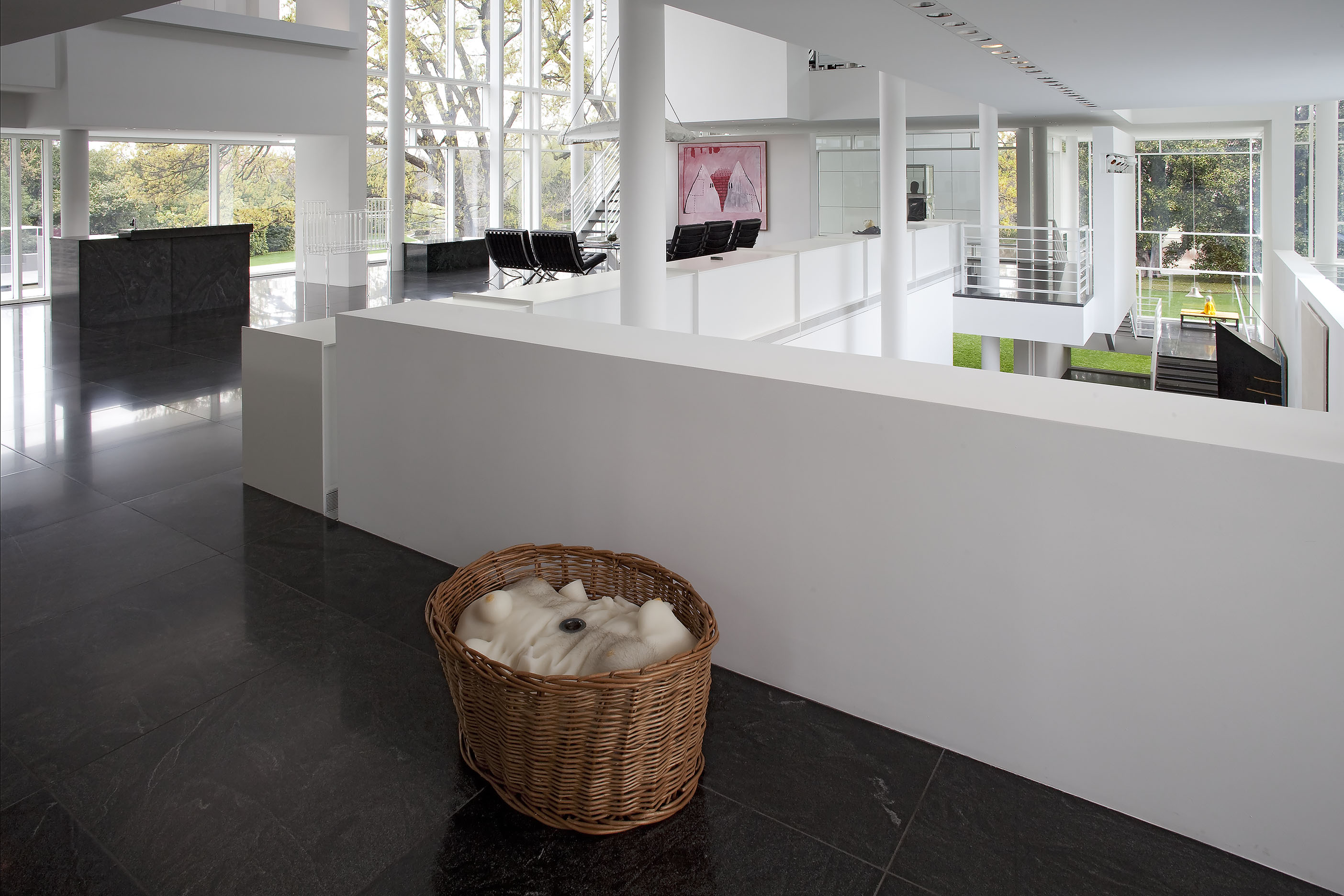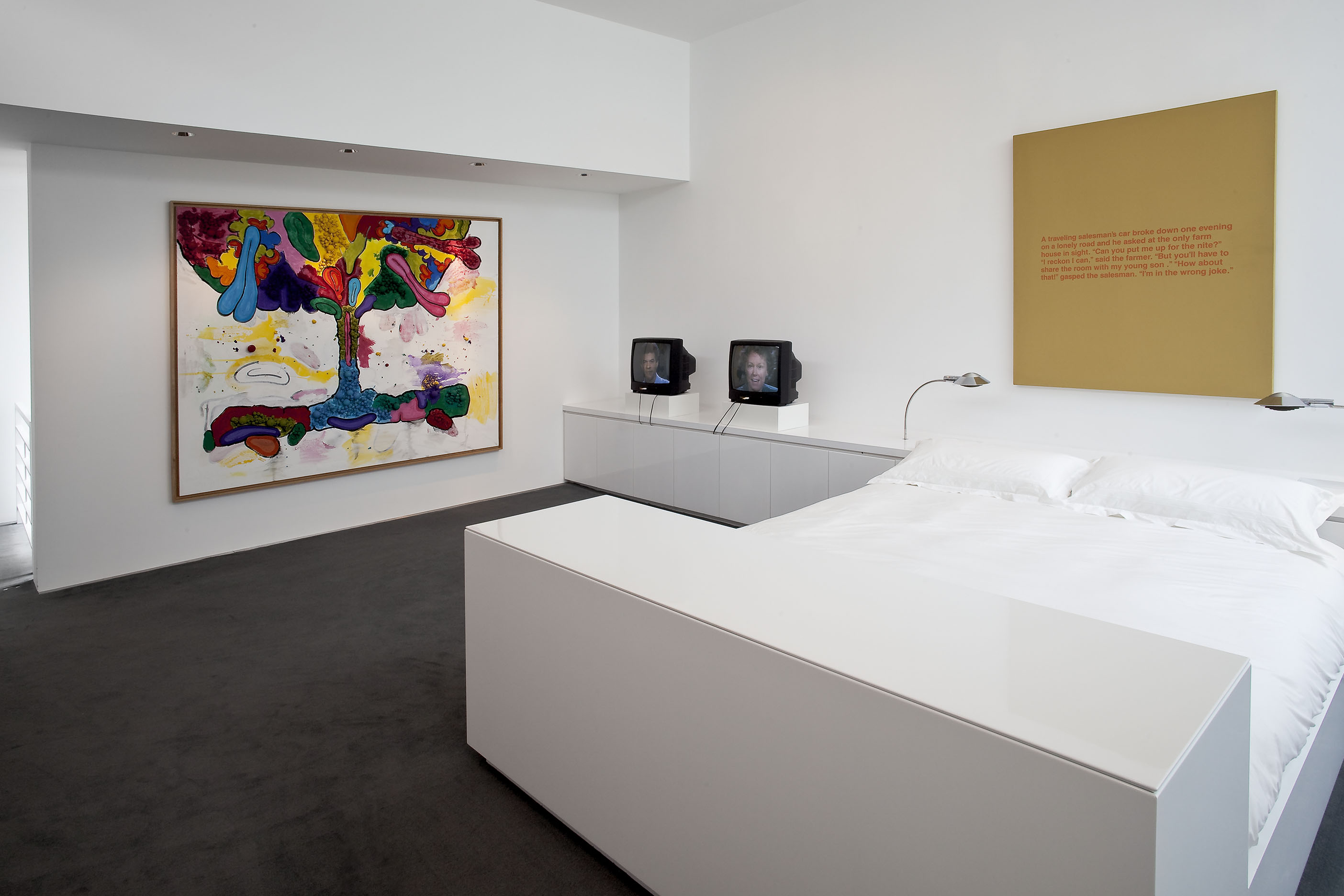 The stair landing, second-floor sitting room, and the second-floor back hallway explore the more psychological sides of the collection, with works from the 1960s through the 1990s that delve into the examination of the self and identity in late modern and postmodern art. In a related vein, the works in the living room look at the self in relation to architecture and the society that creates it. In contrast, the library contains the most essential nonobjective works from Europe and the United States of the 1950s and 60s, paintings and objects that set the stage for the larger and somewhat later works of the entrance gallery.