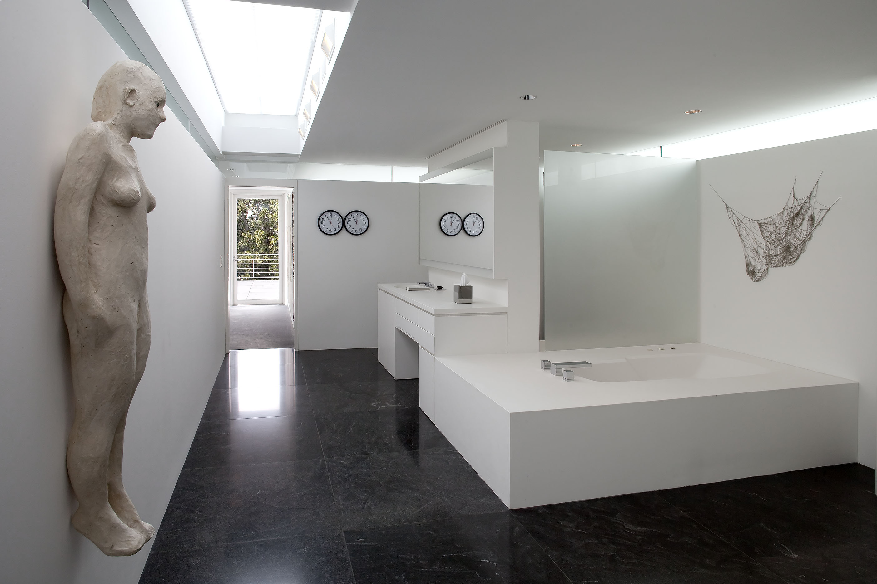 On the third floor, works in the bedroom focus on the reemergence of painting as an essential medium in the 1980s and 90s, while works on the landing and in the bathroom look more closely at a sense of fragmentation of the self of the last two decades of the twentieth century. And finally, the works in the kitchen focus on a range of new voices that have emerged in the last decade. Dotted throughout the house are five paintings by On Kawara, one from each decade in which the artist has worked.