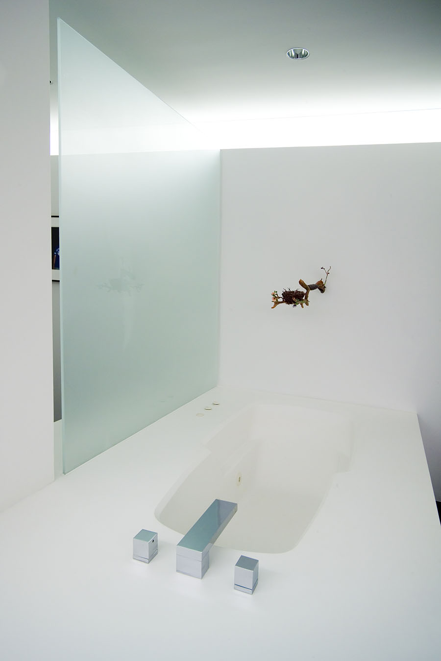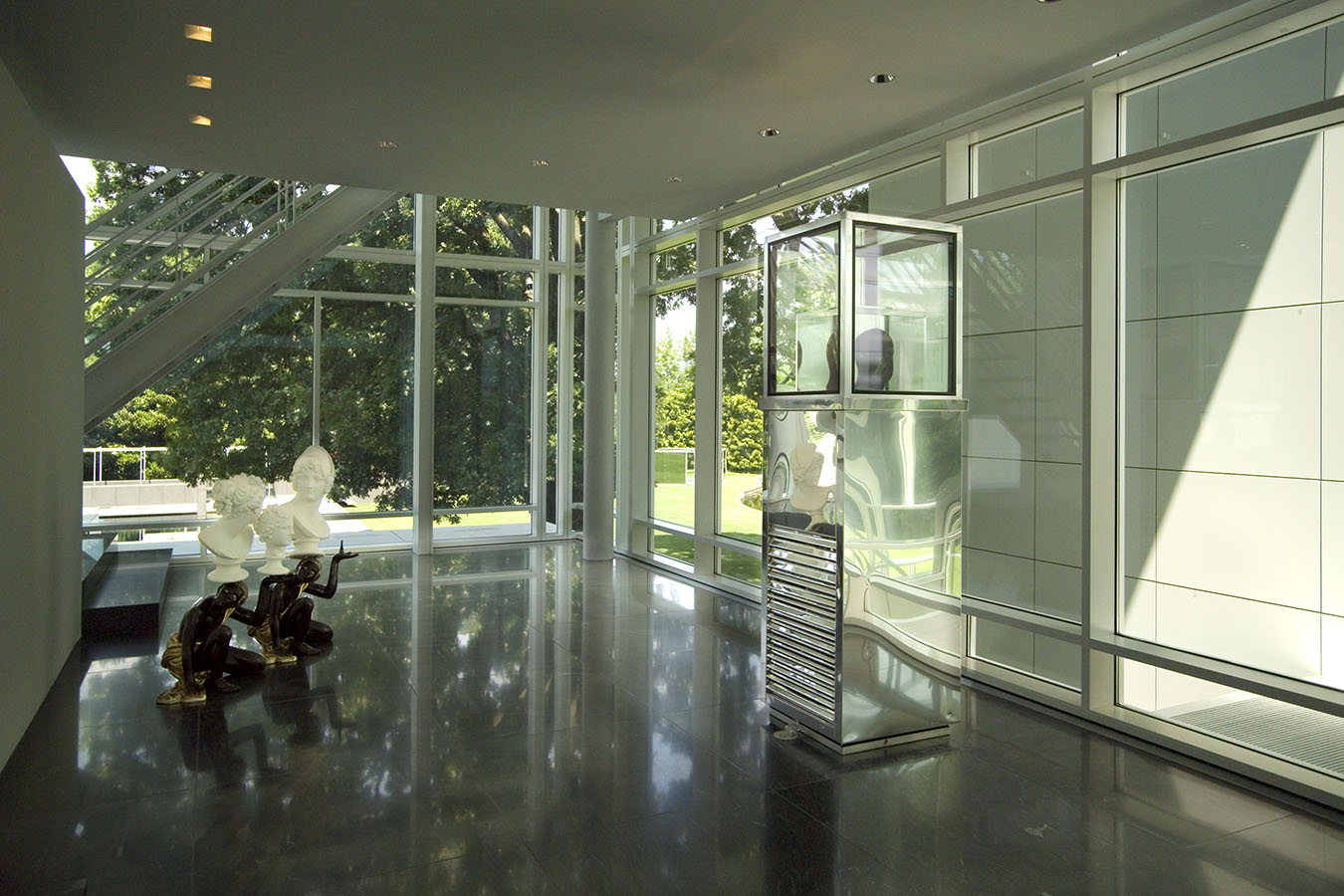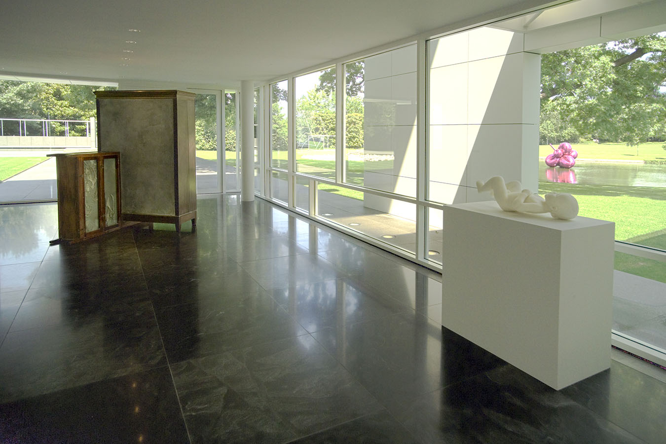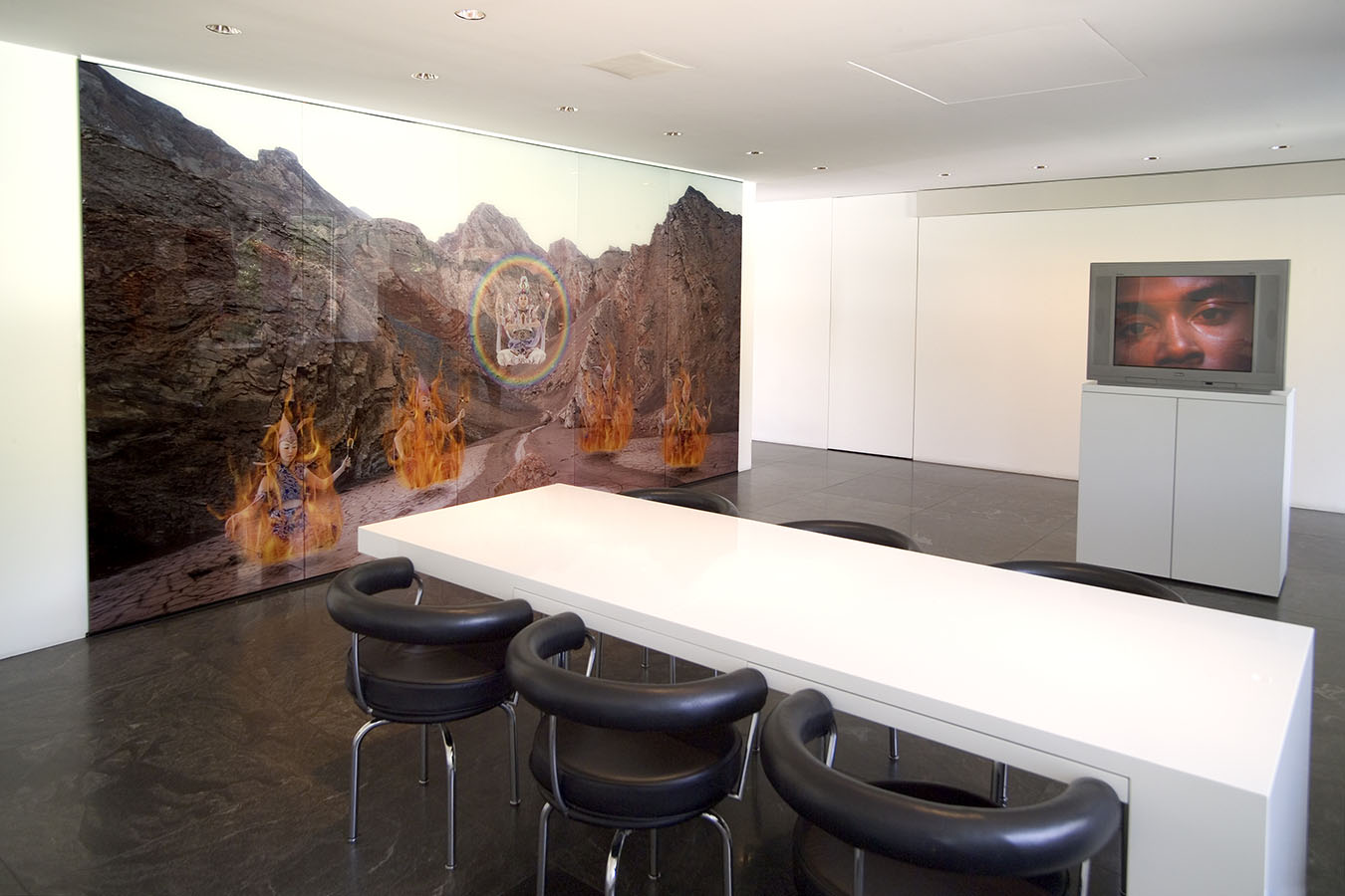 Aptly enough, fragmentation is a pervasive theme throughout the installation. In some spaces, such as the entryway, living room, and library, the psychological heat is intense. In others, like the kitchen, the urge for serenity is central. Many artists (including Sigmar Polke, Francesco Clemente, and Marc Quinn) explore psychological states from a personal perspective. Others (such as Jenny Holzer, Doris Salcedo, and Fred Wilson) use the psychological to examine cultural identity.
